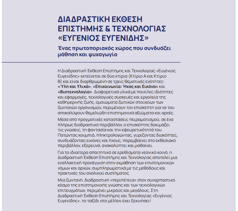 Διαβάστε το έντυπο για την Διαδραστική Έκθεση Επιστήμης και Τεχνολογίας ΕΥΓΕΝΙΟΣ ΕΥΓΕΝΙΔΗΣ