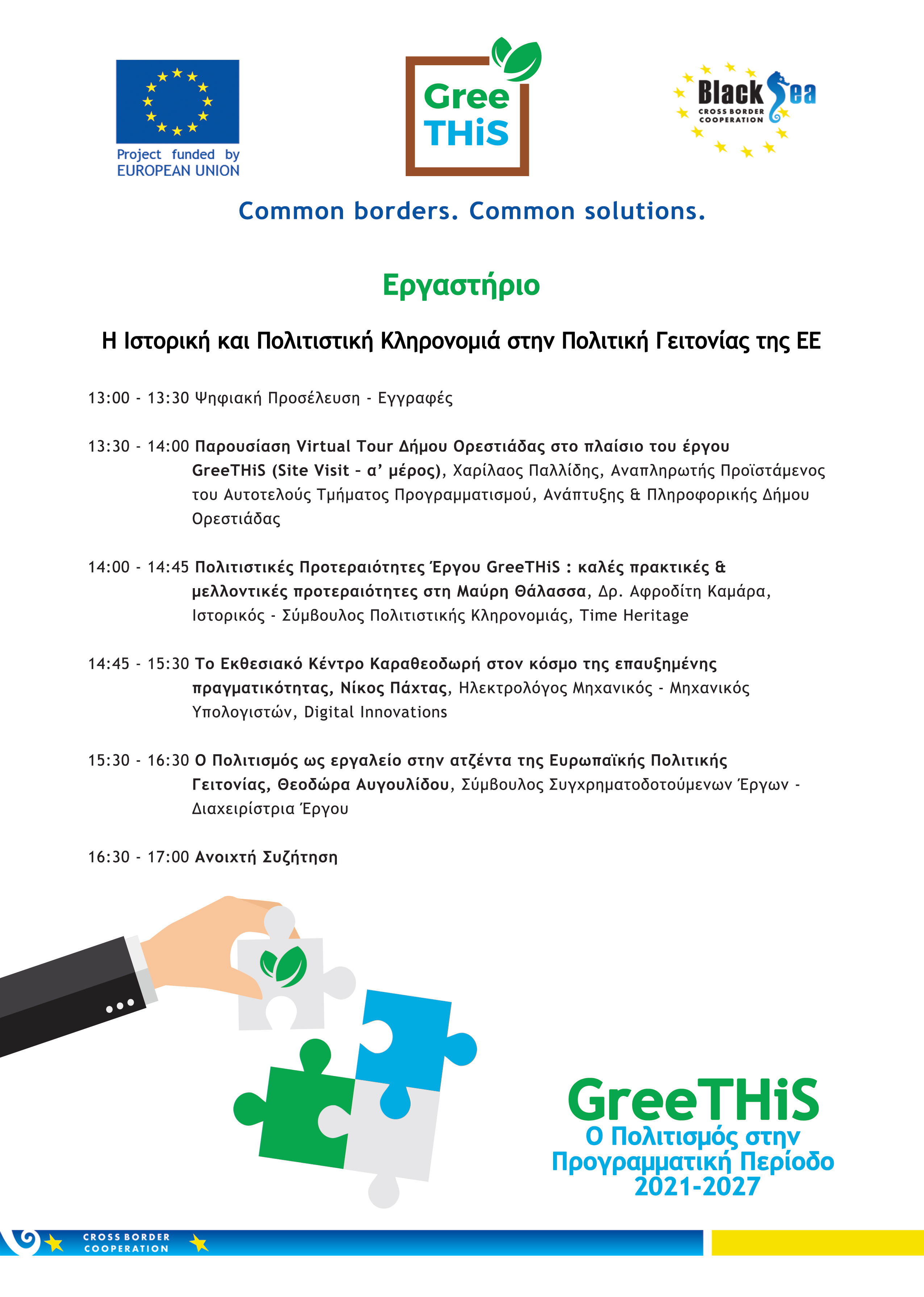 Στη διάρκεια υλοποίησης του έργου GreeTHiS οργανώθηκαν και υλοποιήθηκαν τρία θεματικά εργαστήρια με στόχο την ανάδειξη αναπτυξιακών προτεραιοτήτων για την περιοχή, μέσα από την διαδραστική συνεργασία του Δήμου Ορεστιάδας με εκπροσώπους συνεργαζόμενων φορέων αλλά και πολιτών.