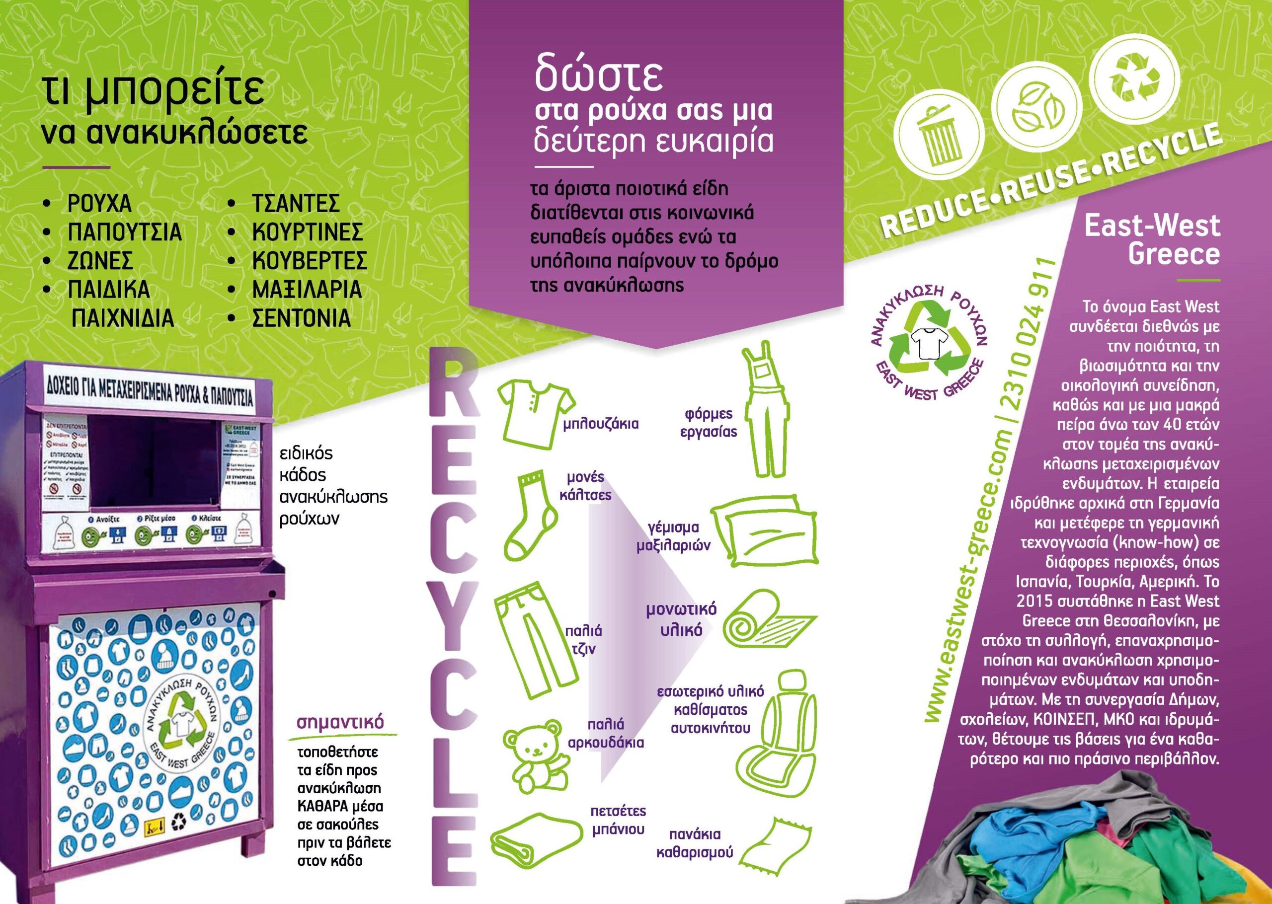 Δελτίο τύπου για την τοποθέτηση μωβ κάδων ανακύκλωσης ρούχων