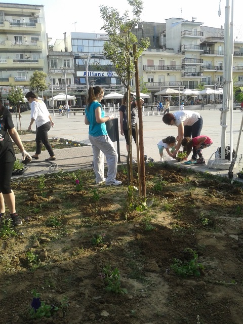 Στιγμιότυποα από άλλη μια δράση φύτευσης λουλουδιών στα παρτέρια της πλατείας που πραγματοποιήθηκε το απόγευμα στις 06/05/2015